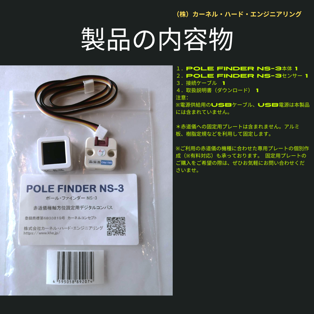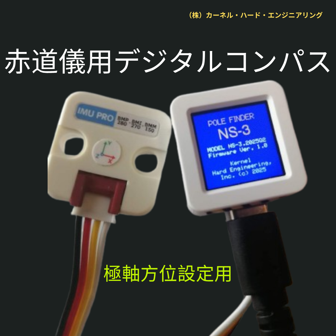 - 天体観測・撮影時におけるポータブル赤道儀の極軸合わせをサポートする電子式コンパスです。