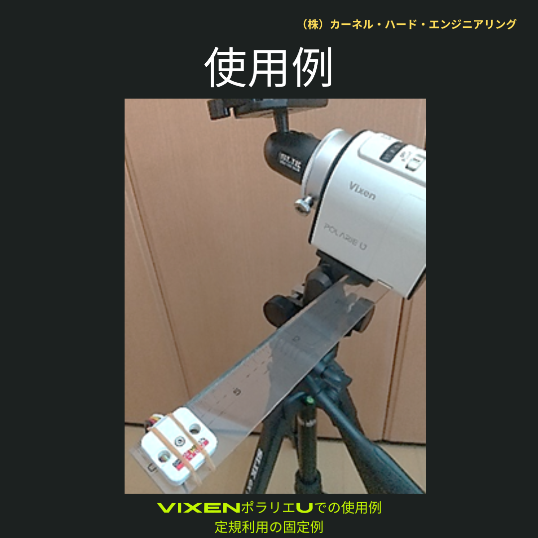 - 望遠鏡の赤道儀にNS-10をつけることができます。ただし、この付け方は高倍率の撮影には向きませんが、 簡単な観測や低倍率の撮影なら大丈夫です。